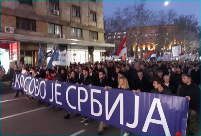 Тема протеста: Зауставимо велеиздају, Косово је Србија!