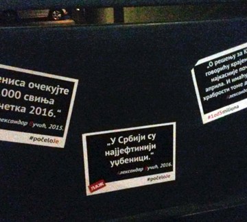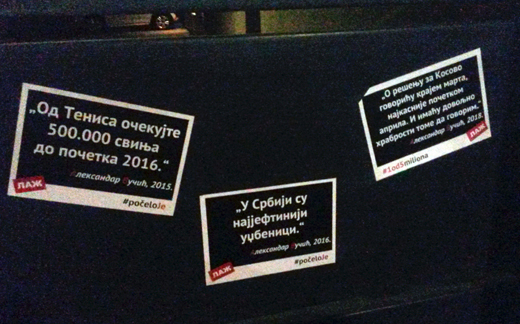 Published at 520 × 324 in Протест „1 од 5 милиона“ у Београду: Сто хиљада налепница за „улице лажи Александра Вучића”