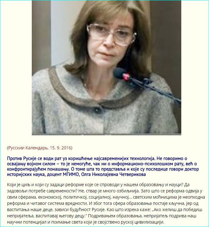 Олга Четверикова: Ако желиш да победиш непријатеља, васпитавај његову децу