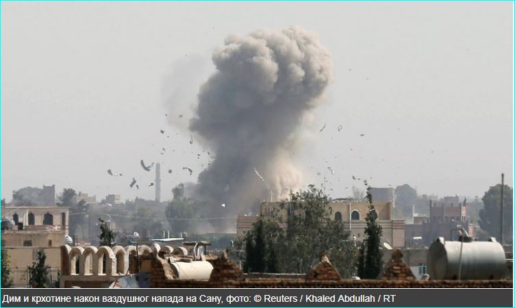 Коалиционе снаге које предводе Саудијска Арабија и Уједињени Арапски Емирати немилосрдно бомбардују Јемен од 2015. године у покушају да збаце Хути побуњенике који контролишу главни град Сану. Коалиција наоружана и обучена од стране САД-а, како се наводи, намерно гађа болнице и другу цивилну инфраструктуру, што је довело до масовне епидемије колере, а верује се да је више од 60.000 погинуло у сукобу од 2016. године, са још 85.000 процењених мртвих од глади.
