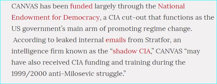 Центар за примењене ненасилне акције и стратегије (КАНВАС), који делује од 2004. године, настао је из модела који су америчке безбедносне структуре развилеприликом припреме рушења Слободана Милошевића у Србији и изучава се као модел такозваних обојених револуција којима Американци и њихови савезници подривају и руше неподобне режиме по свету.