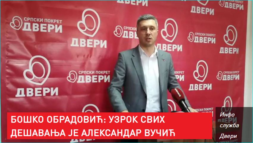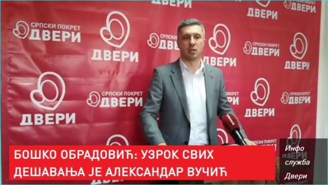 На ванредној конференцији за медије председник Двери Бошко Обрадовић говорио је о актуелним дешавањима на протестима у Београду у којима је по први пут постојала интервенција полиције, у суботу у згради РТС.