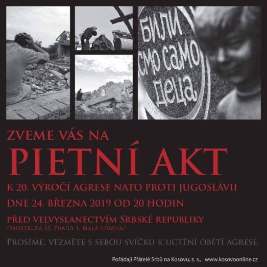 У недељу, 24.марта 2019., су удружења Срба и пријатеља Срба у Чешкој, испред србске амбасаде у 20 часова, одржали протест против НАТО бомбардовања и час сећања на жртве агресије НАТО 1999. на Србију.