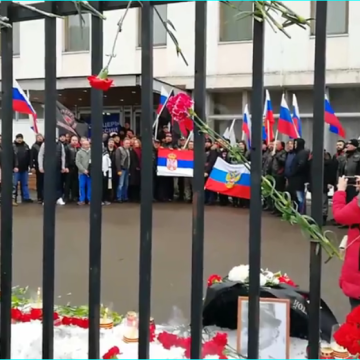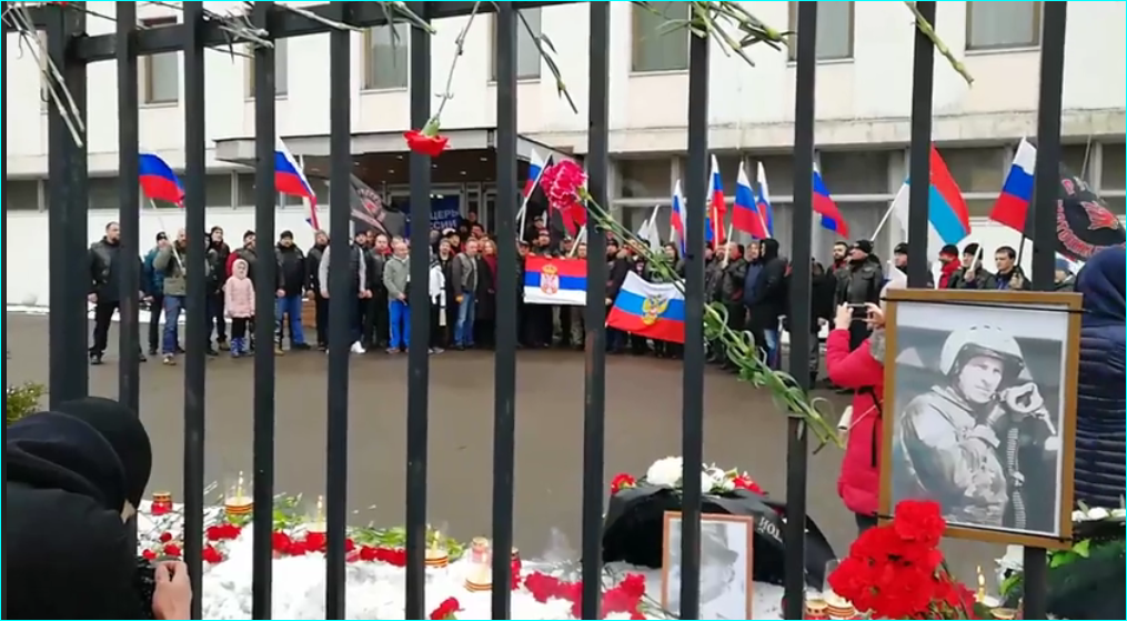 Published at 1015 × 559 in Деки Берић, 24. март: Братски руски народ пали свеће и полаже цвеће испред Амбасаде Србије у Москви (видео)