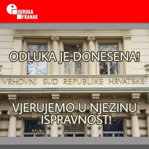 ХРВАТСКИ СУД је већ донео РЕШЕЊЕ, како су обавестили своје чланове представници Удруге Франак у Хрватској: