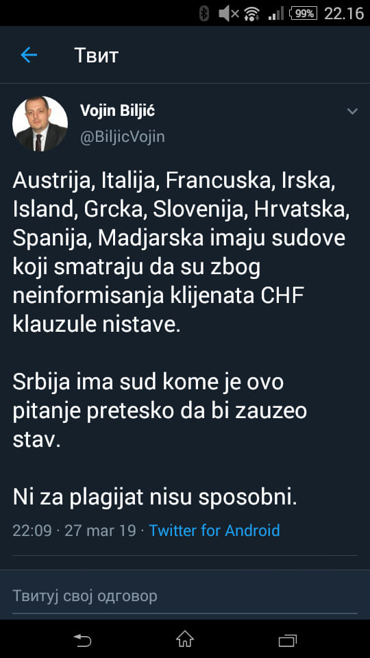 нису донели ни једну правноснажну пресуду у складу са европском праксом у овим споровима у било ком суду у Београду ( изузетак су једино две правноснажне пресуде у Нишу, на које су банке изјавиле посебну ревизију);
