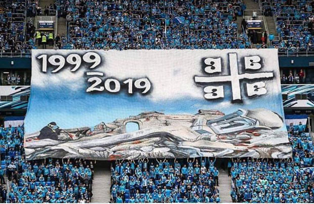 Они су на трибини где су се налазиле најверније присталице клуба из Санкт Петербурга развили транспарент подршке, уз цртеж као подсећање на страдање нашег народа те 1999. године.