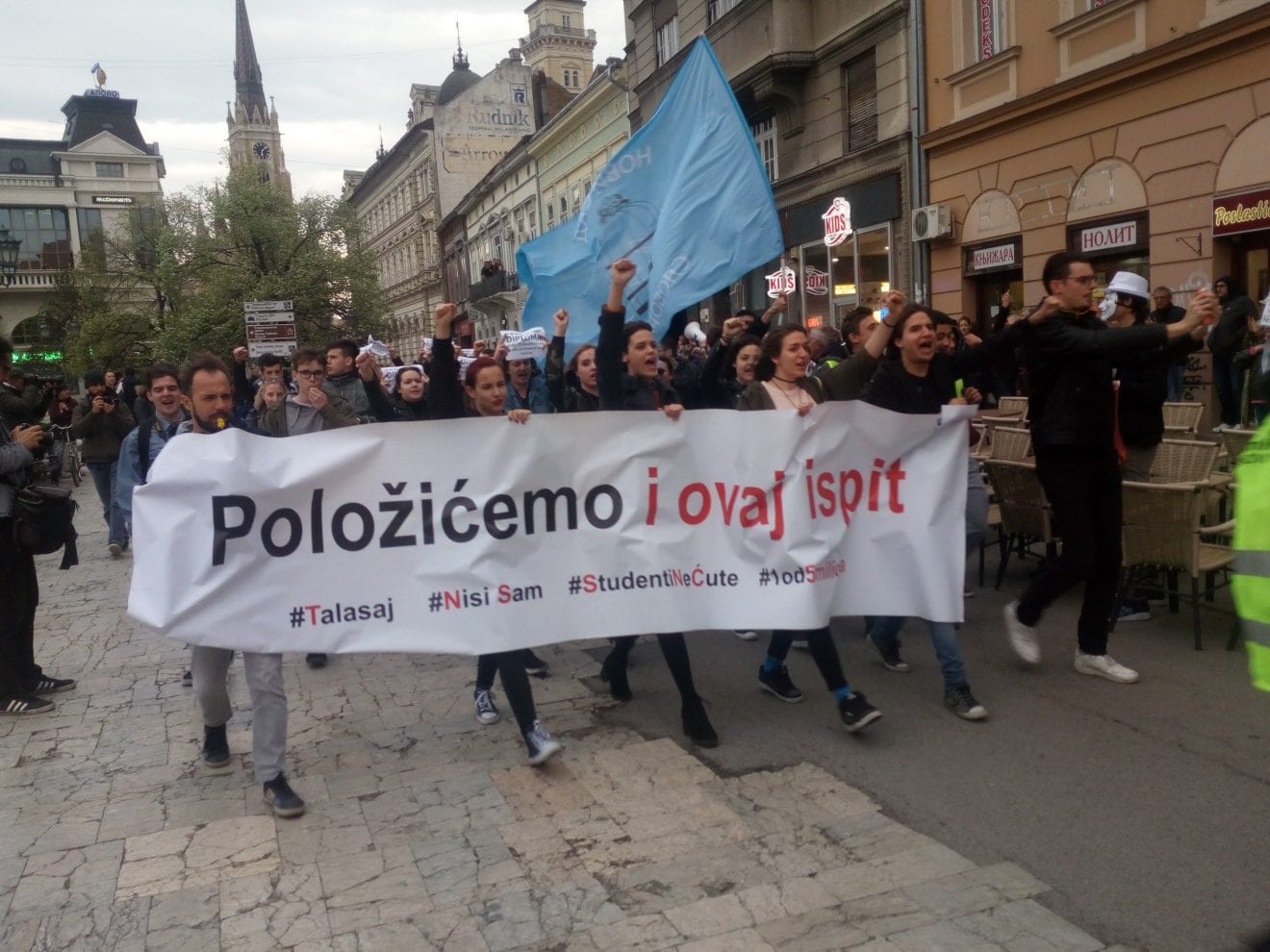 Протестантима су се, као и раније, у организованој колони придружили студенти Новосадског универзитета, које је из кампуса довео писац Марко Шелић Марчело.