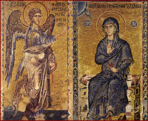 Јави јој се Гаврил у светлости архангелској и рече јој: Радуј се, благодатна! Господ је с тобом! и остало све редом како пише у Еванђељу божанственог Луке (Лк. 1, 26-38). Са овом архангелском благовешћу, и са силаском Духа Светога на Дјеву Пречисту, отпочиње спасење људи и обновљење твари.