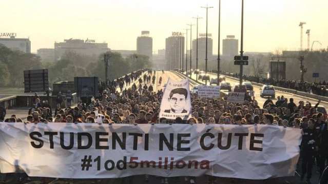 Велика студентска шетња #1од5милиона под слоганом студенти не ћуте кренула је у 16 часова, а студенти и грађани су се окупили код Студентског града на Новом Београду.