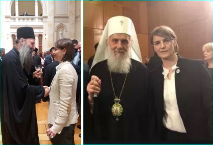 „Vladika Porfirije, koji je sada i član Sinoda SPC (crkvene vlade), prišao je ministarki, uhvatio je za obe ruke i doslovno joj rekao: `Evo i uživo da vam kažem, imate moju i punu podršku Crkve da budete premijer, o vama mislimo sve najbolje. Niko se tome ne protivi, zaista. Molim Vas, nemojte da verujete svakojakim glasinama`.“ (espreso.rs – CRKVA PODRŽAVA BRNABIĆKU ZA PREMIJERA! Poručili joj: Ne verujte glasinama, uz vas smo!)