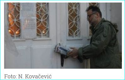 Зоран Филиповић, водитељ протеста, ставио је примерак Данаса на кваку од закључаних врата Скупштине града и тиме, симболично, омогућио одборницима власти да се информишу о дешавањима у земљи.