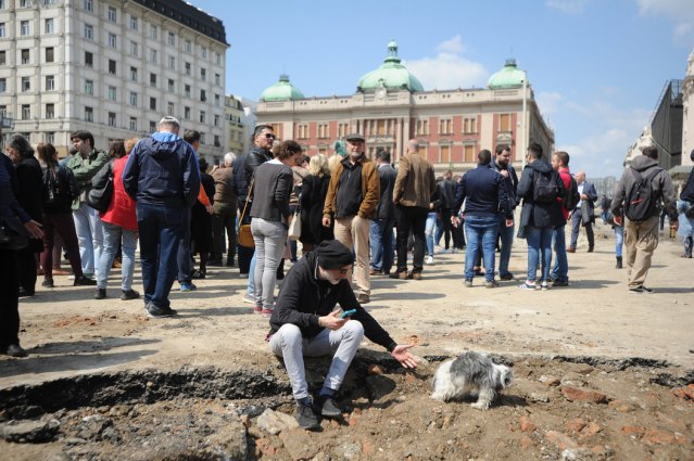 Активисти Савеза за Србију (СзС) и представници општине Стари Град на челу са председником општине Марком Бастаћем, поново су данас, око поднева, блокирали радове на Тргу Републике и поручили да ће остати ту до краја дана, те да неће дозволити да се радови наставе.