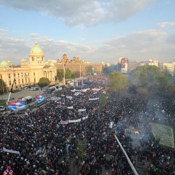 Beograd, 19. aprila 2019 – Gradjani pale baklje na skupu „Buducnost Srbije“ ispred Narodne skupstine Srbije. FOTO TANJUG / FILIP KRAINCANIC / bb