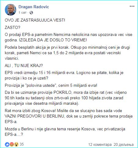 Економиста Драган Радовић на свом фејсбук профилу коментарисао је ову вест.