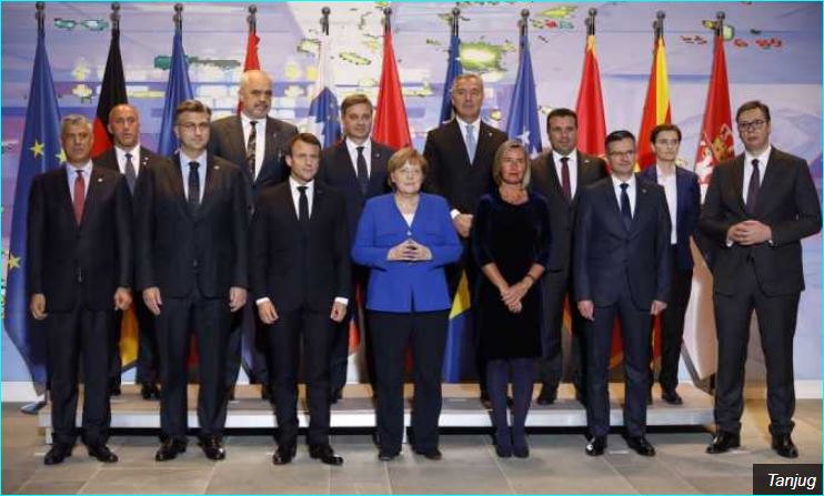 Берлински скуп су иницирали немачка канцеларка и француски председник, Ангела Меркел и Емануел Макрон, а у закључцима стоји да је наглашен значај коначног, правно обавезујућег споразума о, како се наводи, потпуној нормализацији односа Београда и Приштине.