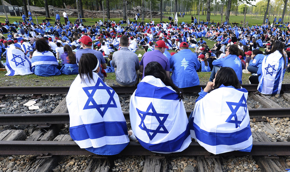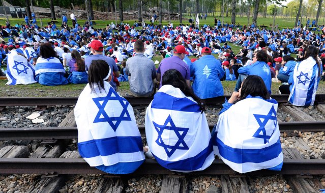 На некадашњем месту логора Биркенау, где су Јевреје из читаве Европе довозили возовима и убијали у гасним коморама од 1942. до 1945. године, учесници марша су постављали дрвене знакове са именима рођака који су убијени у холокаусту на преосталим пругама.
