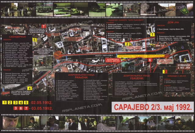 Мапа злочина у Сарајеву 2. и 3. маја 1992. које су извршили припадници муслиманске Армије БиХ