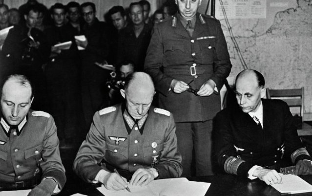 Иза оваквих разлика у датумима крила се нечија воља и мала временска разлика. Наиме, капитулација је првобитно била потписана у француском граду Ремсу, 7. маја, и ступила је на снагу 8.маја у 23.01 по средњеевропском времену. Оваквим развојем догађаја били су незадовољни совјетски лидери са Стаљином на челу, који је сматрао да предају мора да прими само изасланик врховне команде Совјетског Савеза, и да сами чин потписивања буде обављен у Берлину, уз инсистирање да је протокол из Ремса био само прелиминирани, а да ће се сама церемонија морати одржати у Берлину где се тада налазио маршал Георгиј Жуков.