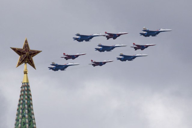 Традиционално, у завршном делу параде Победе у Москви пред публиком ће наступити познати руски акробациони тим на борбеним авионима. Ако ће “Стрижи” пролетети изнад Црвеног трга у уобичајеним МиГ-29, “Руски витезови” ће да покажу јавности Су-30СМ. Су-30 је прошао ватрено крштење у Сирији, у којој обавља борбене мисије подршке и покривања руских бомбардера. По мишљењу војних стручњака и познавалаца, овај авион се показао у најбољем светлу.