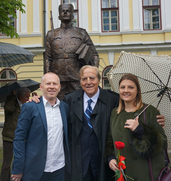 Председник Друштва српских домаћина Страин Шуљагић (централно) са ауторком споменичке фигуре Наташом Марковић, дипл. вајаром, фото: М.Николић