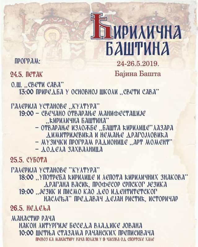 Одборници бајинобаштанске скупштине недавно су једногласно усвојили Декларацију о заштити и неговању ћирилице, која предвиђа низ конкретних мера како би се популаризовало коришћење нашег писма.