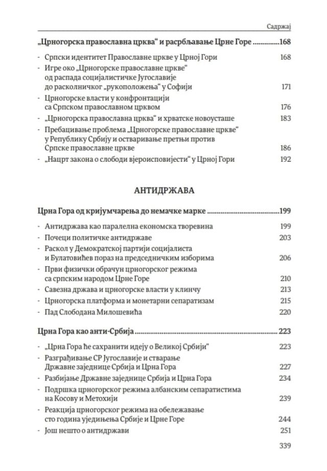 „Црногорска нација није настала у сложеном историјском процесу, јер је у другој половини 19. века и првој половини 20. века идејно обликована у кабинетима Рима, Беча, Загреба и Москве, а не у Црној Гори. Реч је о идентитетском инжењерингу којим су инострани планери, свако из својих побуда, Црногорце хтели да истргну из српства.