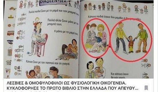 По мишљењу калавритског митрополита Амвросија, министарство образовања Грчке извршава туђе налоге. Он је изразио мишљење да ‘међународна заједница содомије’ ради на измјени човјечанства по етапама. Владика је као примјер навео страницу из уџбеника на грчком језику који је штампан у Канади. У њему се истополни парови који васпитавају усвојену дјецу представљају као варијанта норме“, јавља агенција Агион-Орос.
