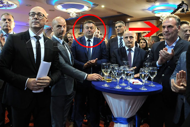 Иван Тодосијевић (у црвеном кругу) на прослави годишњице оснивања странке ратног злочинца Рамуша Харадинаја кога је чак и Алескандар Вучић назвао „кољачем беба“ због једног од познатих случајева. Са Тодосијевићем се ту нашао и остатак „Српске листе“ али и ратних злочинаца попут Фатмира Љимаја (на кога показује стрелица), одговорног за бруталне злочине над Србима у логору „Клечка“.