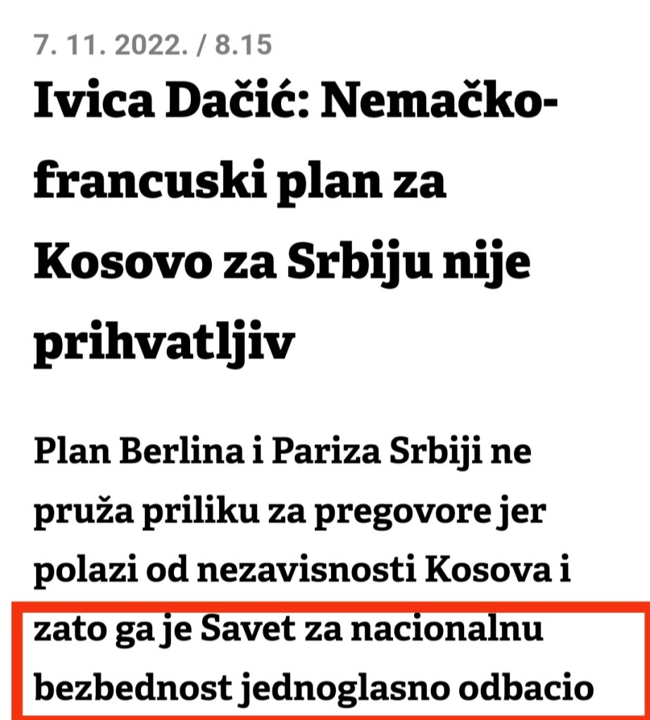 Српској јавности мора се одмах дати на знање да свако ко врши било какве радње које за циљ имају потписивање или спровођење тајног документа, заправо врши УГРОЖАВАЊЕ НАЦИОНАЛНЕ БЕЗБЕДНОСТИ. За то постоји јако крупан материјални доказ који је оставио сам Ивица Дачић 6. и 7.11.2022. године када су сви српски медији пренели његову изјаву у којој је обавестио јавност о најважнијој одлуци Савета за националну безбедност. Савет за националну безбедност једногласно је одбацио ТАЈНИ УСТАВОКРШИТЕЉСКИ ДОКУМЕНТ. Зашто је ово од суштинске важности? Због тога што је то званична одлука највишег тела у држави које се брине о безбедности државе и нације. Када оно на дневни ред стави неки документ и једногласно га одбаци то значи да Савет доноси одлуку да тај документ угрожава националну безбедност. Савет није политичко тело. Његове ингеренције су дефинисане Законом и искључиво се односе на безбедност државе, што значи да је његова улога да повеже и координира рад војске, полиције и служби безбедности. Ево најважнијих ингеренција Савета: