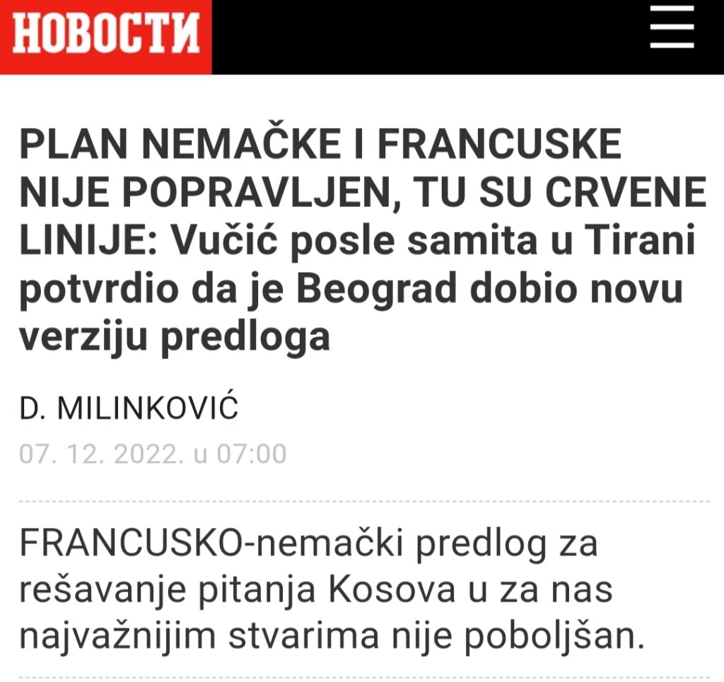 Уколико, изабрани представници власти у Србији више не могу рационално и аутономно да доносе одлуке већ морају да прекрајају своје најважније одлуке о националној безбедности, онда су држава Србија и сви њени грађани у великом проблему који надмашује проблем Косова. Сутрадан већ, може да се догоди нова уцена. На пример: Да се иселе сви грађани Крушевца из свог града јер тако захтевају Шолц и Макрон или неки непознати уцењивачи.