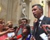 Док је Стаматовић говорио, прекидан је скандирањем „Лопови, лопови!“.